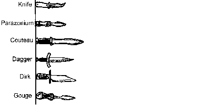 Daggers are short, stabbing blades ranging from six inches to more than a foot in length. Their size and utility has made them a very long-lived weapon used on all the planets of the Retroverse.