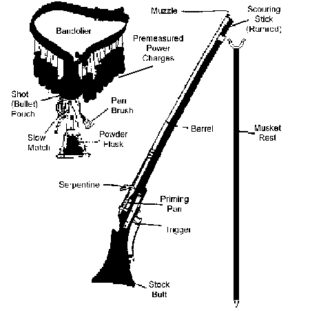Thundersticks are two-handed weapons, fired like a rifle except that the arm absorbs the recoil, not the shoulders, since the weapon does not rest on the latter. The thunderstick is a large, two-handed primitive gun with a smooth bore barrel as opposed to a rifled barrel. The thunderstick is loaded by pouring smoke powder from a flask or horn into the muzzle and firmly packing it with a piece of paper. The projectile, an iron slug, is rammed in after this. Once the barrel is ready, the pan is filled with smoke powder, the pan's cover is closed, and a burning slow-match (a piece of cloth or paper rolled into a fuse) is placed in the mechanism called the serpentine. Pressure on a metal plate releases the serpentine into the pan and a sound likened to thunder by some primitive cultures earns the thunderstick its namesake. ![]() |